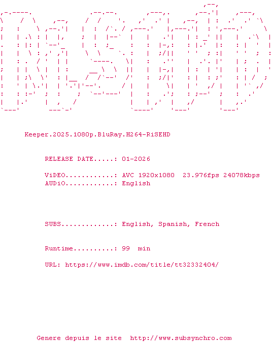 Voir le nfo de la release Keeper.2025.1080p.BluRay.H264-RiSEHD