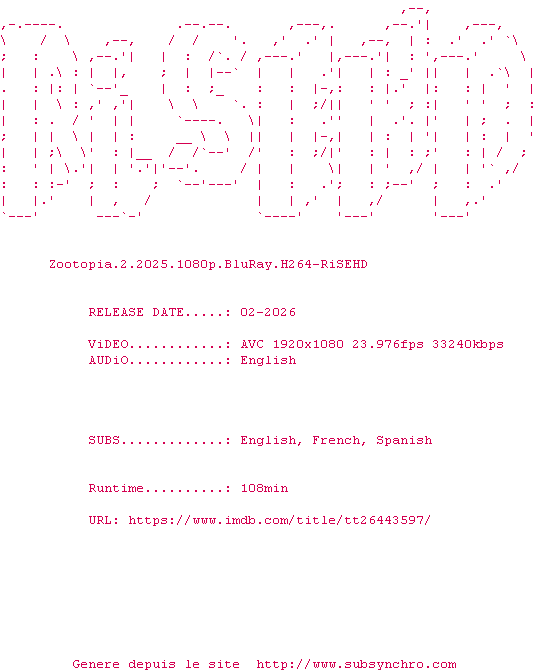 Voir le nfo de la release Nobody.2.2025.1080p.BluRay.H264-RiSEHD
