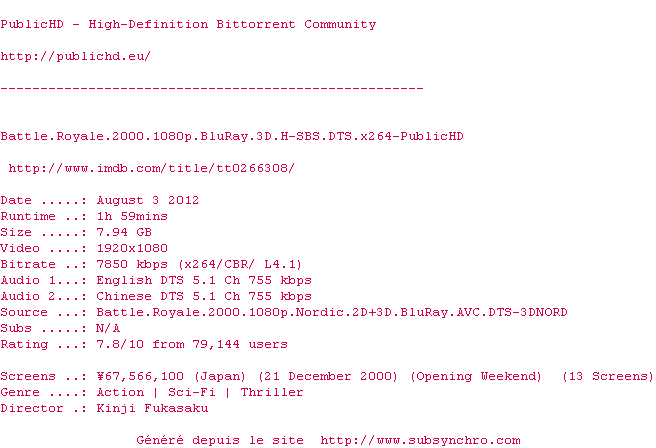 Voir le nfo de la release Star.Trek.Into.Darkness.3D.2013.1080p.BluRay.Half-SBS.DTS.x264-PublicHD