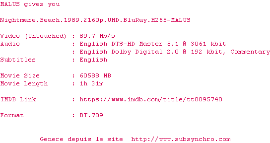 Voir le nfo de la release Creepshow.1982.2160p.UHD.BluRay.H265-MALUS