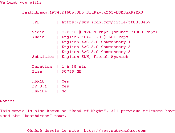 Voir le nfo de la release Prince.Of.Darkness.1987.2160p.UHD.BluRay.H265-MALUS