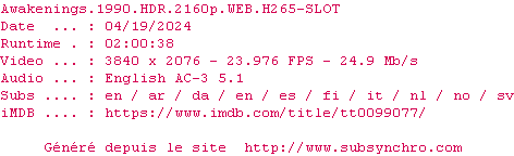 Voir le nfo de la release Awakenings.1990.DV.2160p.WEB.H265-SLOT
