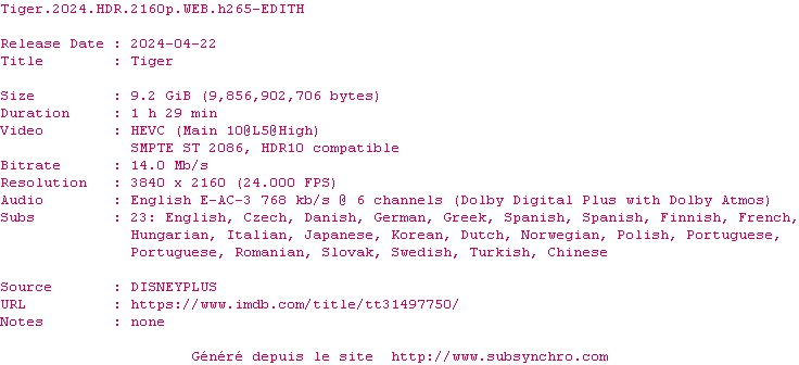 Voir le nfo de la release Black.Widow.2021.IMAX.HDR.2160p.WEB.H265-RVKD