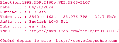 Voir le nfo de la release Election.1999.HDR.2160p.WEB.H265-SLOT