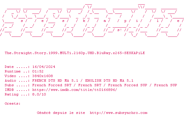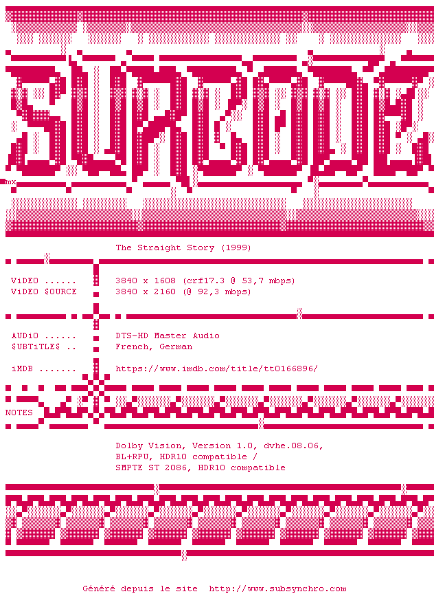 Voir le nfo de la release Dune.1984.MULTI.2160p.WEB.H265-LOST