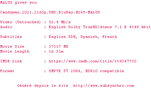 Voir le nfo de la release Blade.1998.2160p.UHD.BluRay.H265-MALUS