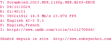 Voir le nfo de la release Scrambled.2023.HDR.2160p.WEB.H265-KBOX
