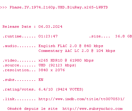 Sous-titres de films synchronises par release