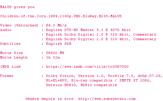 Voir le nfo de la release Blood.Simple.1984.2160p.UHD.BluRay.H265-MALUS