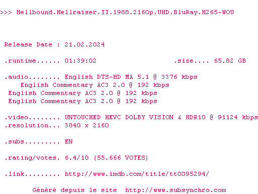 La release Psycho.III.1986.2160p.UHD.BluRay.H265-WOU est en 4K