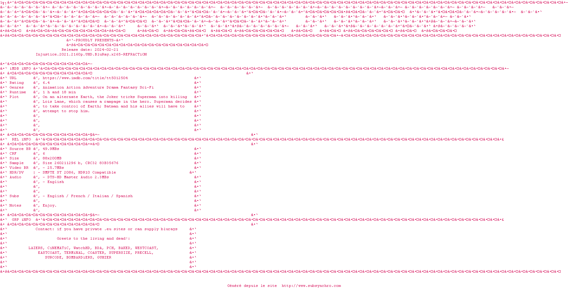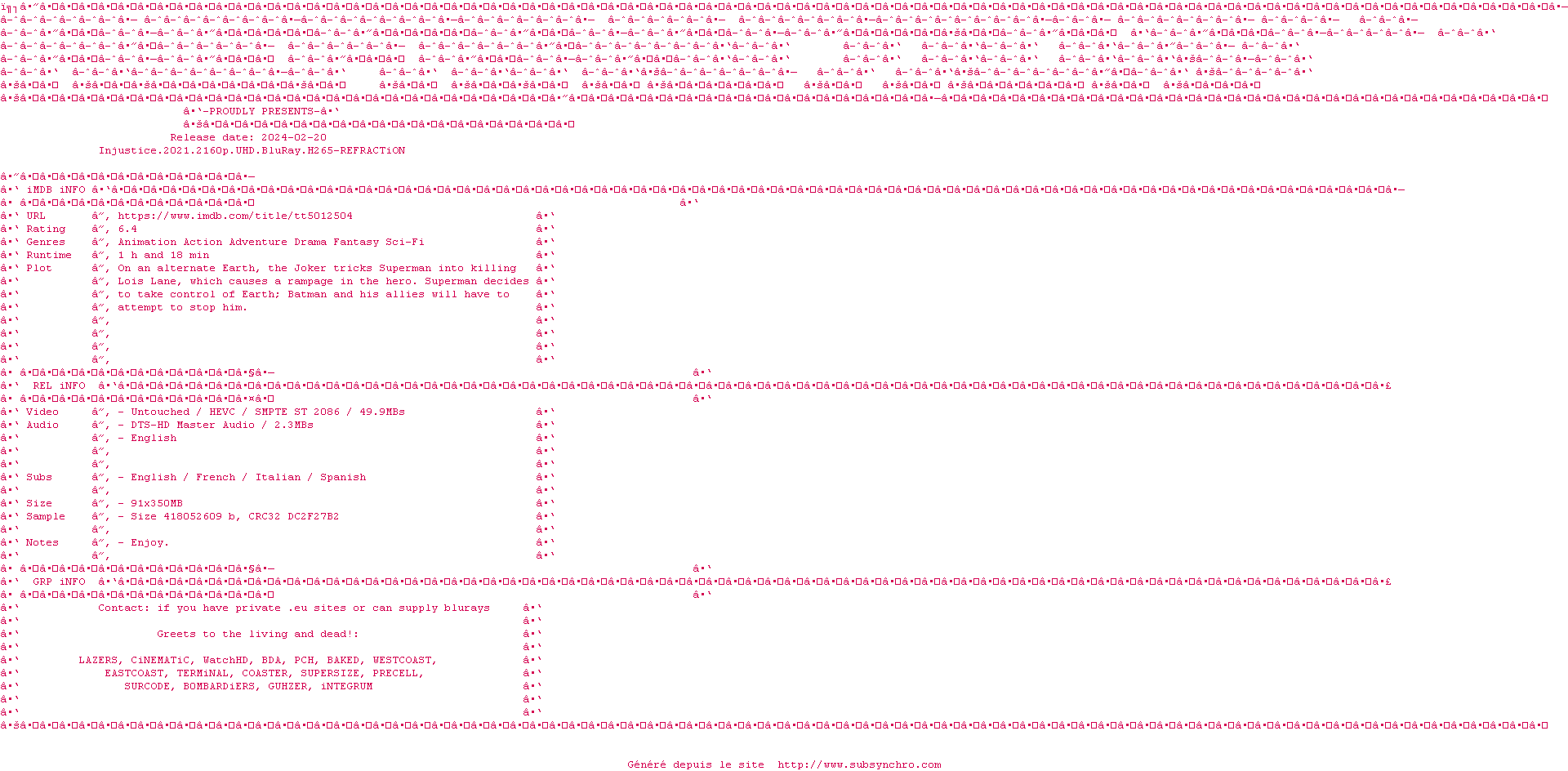 Voir le nfo de la release Injustice.2021.2160p.UHD.BluRay.H265-REFRACTiON