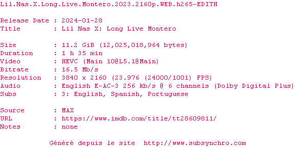 La release Lil.Nas.X.Long.Live.Montero.2023.2160p.WEB.H265-EDITH est en 4K