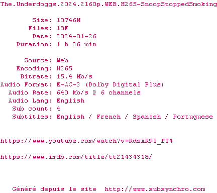 La release The.Underdoggs.2024.2160p.WEB.H265-SnoopStoppedSmoking est en 4K