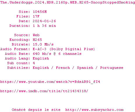 Voir le nfo de la release The.Underdoggs.2024.2160p.WEB.H265-SnoopStoppedSmoking
