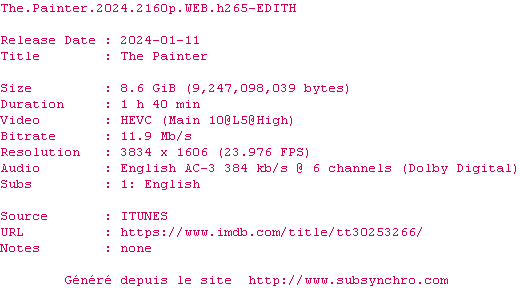 Voir le nfo de la release The.Painter.2024.2160p.WEB.H265-EDITH
