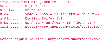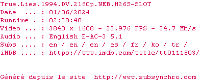 Voir le nfo de la release True.Lies.1994.2160p.WEB.H265-SLOT