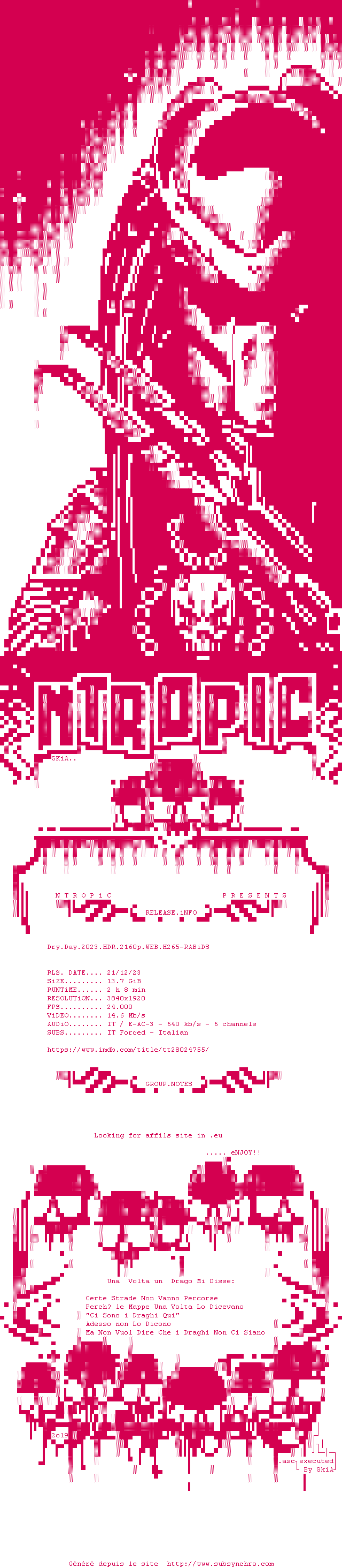 Voir le nfo de la release Dry.Day.2023.HDR.2160p.WEB.H265-RABiDS