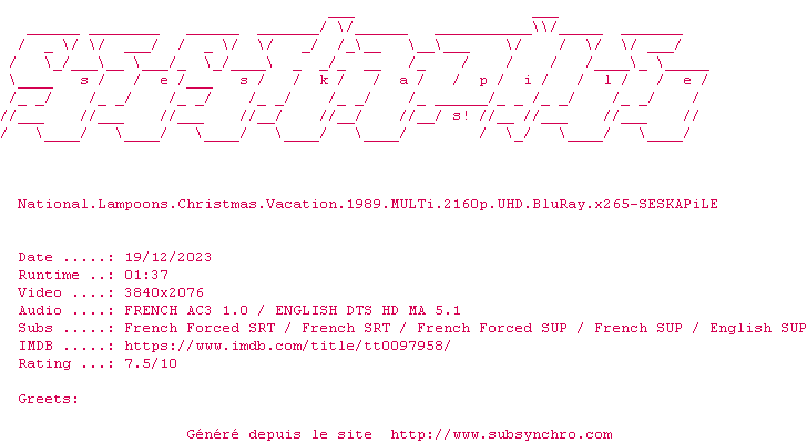 Voir le nfo de la release Titanic.1997.MULTi.2160p.UHD.BluRay.x265-SESKAPiLE