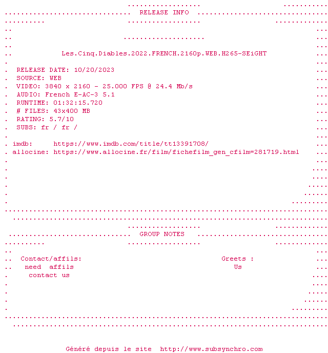 Voir le nfo de la release Tirailleurs.2022.FRENCH.2160p.WEB.H265-SEiGHT