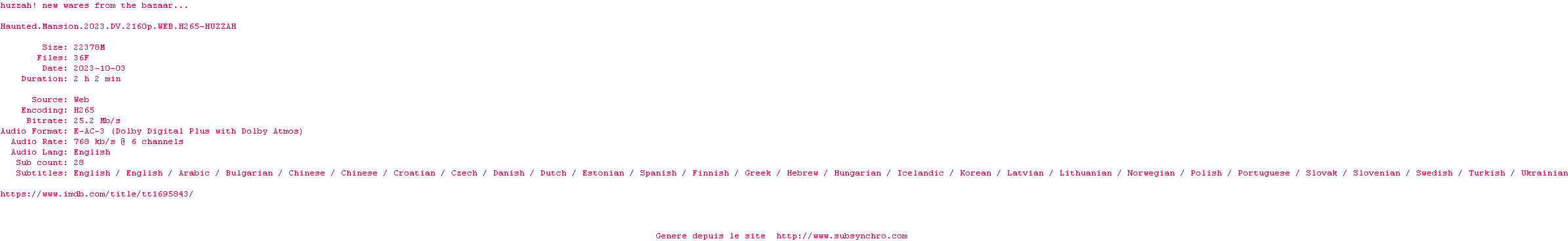 Voir le nfo de la release Haunted.Mansion.2023.2160p.WEB.H265-HUZZAH