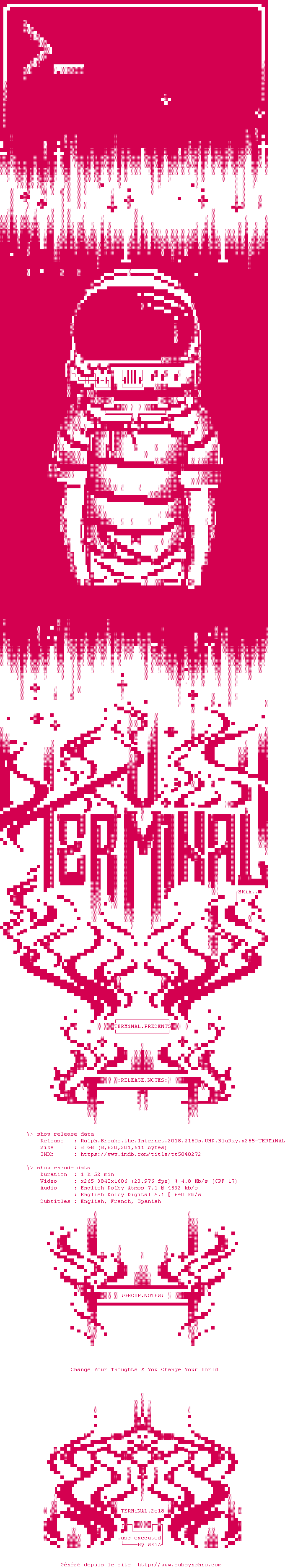 Voir le nfo de la release Ralph.Breaks.The.Internet.2018.2160p.UHD.BluRay.x265-TERMiNAL