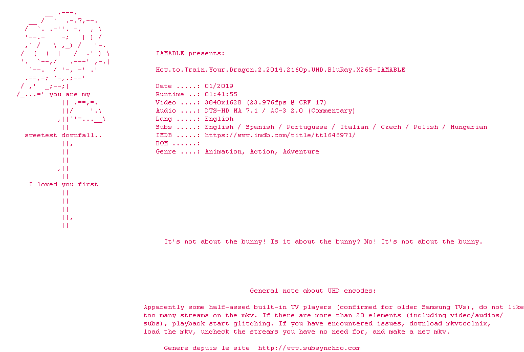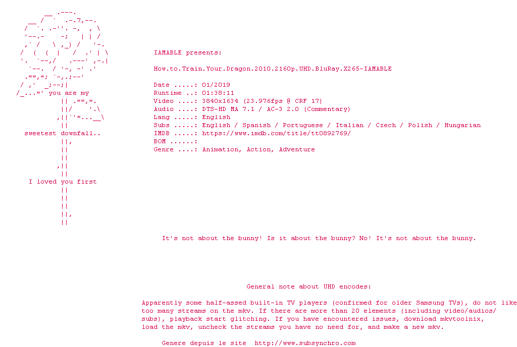 Voir le nfo de la release Suspiria.1977.RERIP.10bit.2160p.UHD.BluRay.x265-IAMABLE