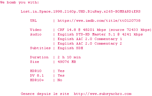 Voir le nfo de la release Deathstalker.1983.2160p.UHD.BluRay.H265-MALUS