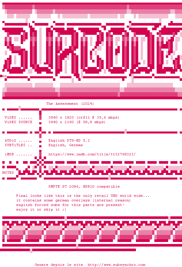 Voir le nfo de la release L.Amour.C.Est.Surcote.2025.FRENCH.HDR.2160p.WEB.H265-SEiGHT