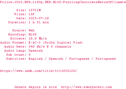 Voir le nfo de la release M3GAN.2.0.2025.HDR.2160p.WEB.H265-ETHEL