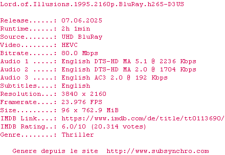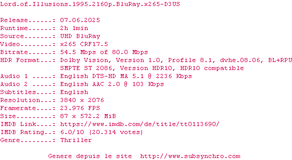 Voir le nfo de la release Dark.City.1998.THEATRICAL.COMPLETE.UHD.BLURAY-BAKED