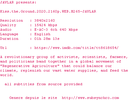Voir le nfo de la release Kiss.The.Ground.2020.HDR.2160p.WEB.H265-JAVLAR