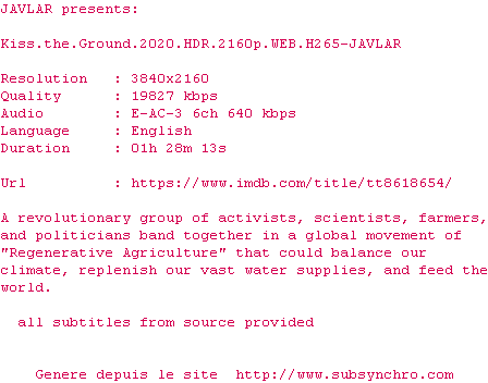Voir le nfo de la release Kiss.The.Ground.2020.2160p.WEB.H265-JAVLAR