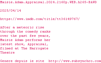 Voir le nfo de la release Maisie.Adam.Appraisal.2024.2160p.WEB.H265-BAWD