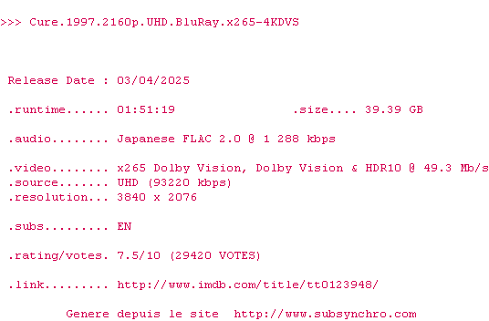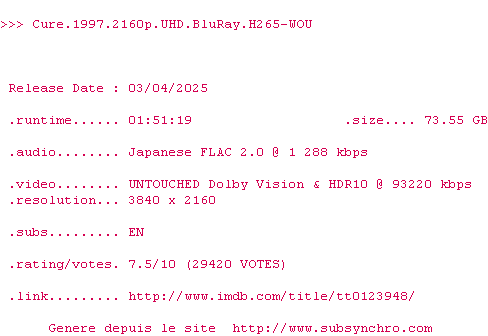 Sous-titres de films synchronises par release