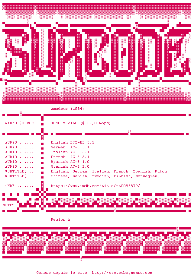 Voir le nfo de la release Amadeus.1984.2160p.UHD.BluRay.x265-SURCODE