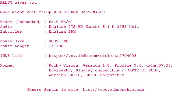 Voir le nfo de la release Dead.Silence.2007.2160p.UHD.BluRay.H265-MALUS