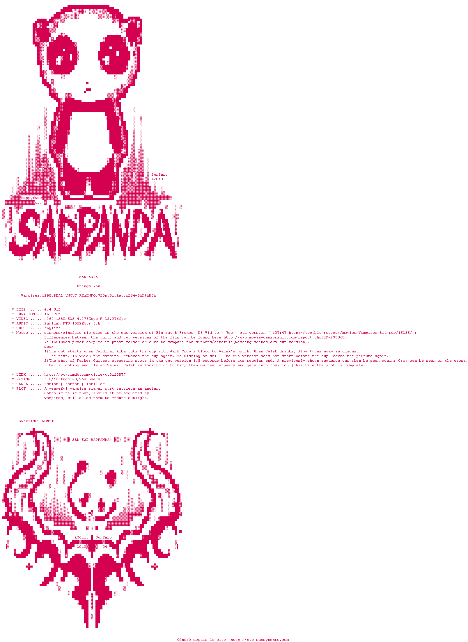 Voir le nfo de la release Vampires.1998.REAL.UNCUT.READNFO.720p.BluRay.x264-SADPANDA