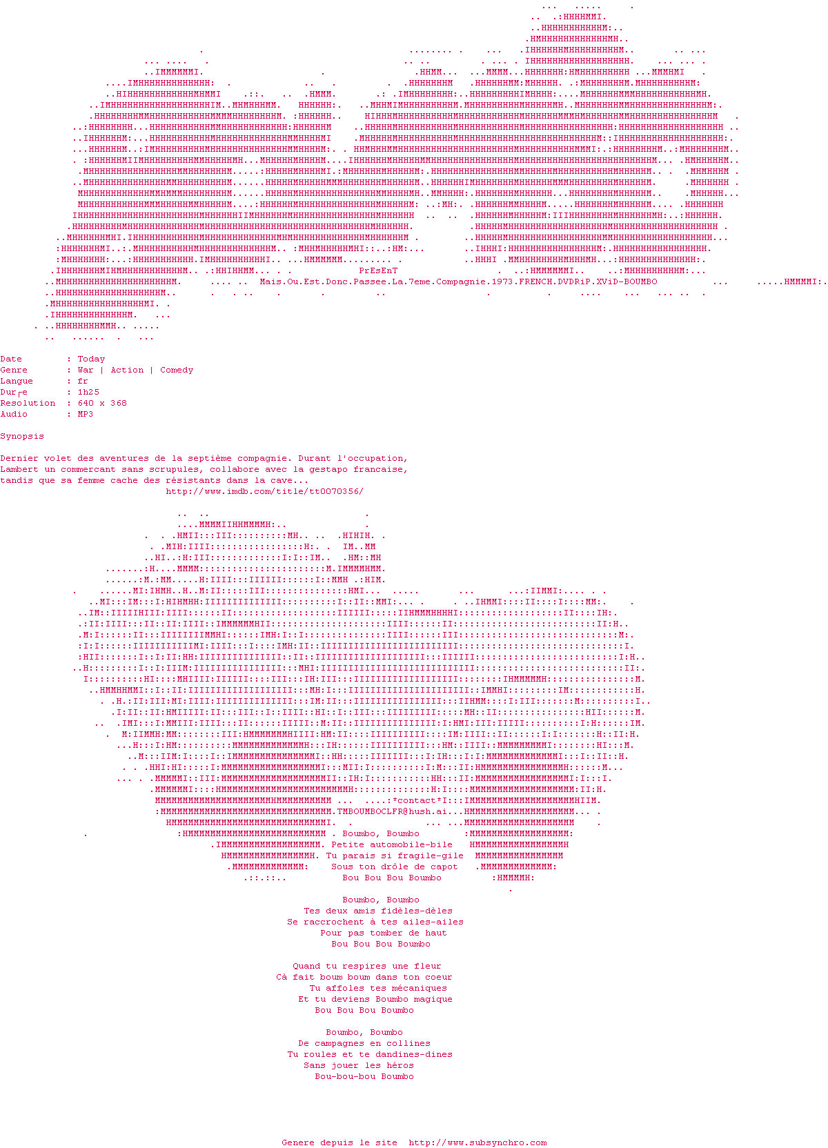 Voir le nfo de la release Mais.Ou.Est.Donc.Passee.La.7eme.Compagnie.1973.FRENCH.DVDRiP.XViD-BOUMBO