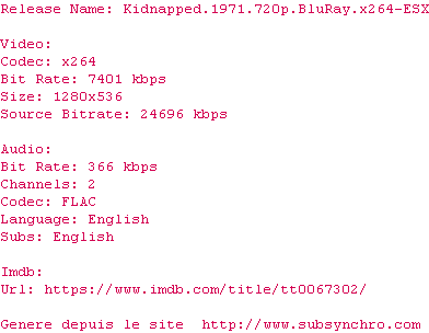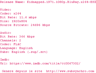 Voir le nfo de la release Kidnapped.1971.1080p.BluRay.x264-ESX