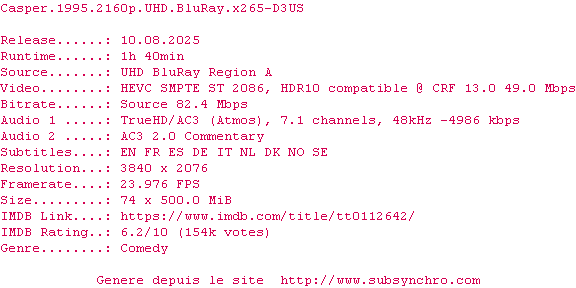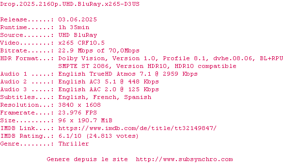 Voir le nfo de la release Final.Destination.Bloodlines.2025.PROPER.720p.BluRay.x264-D3US