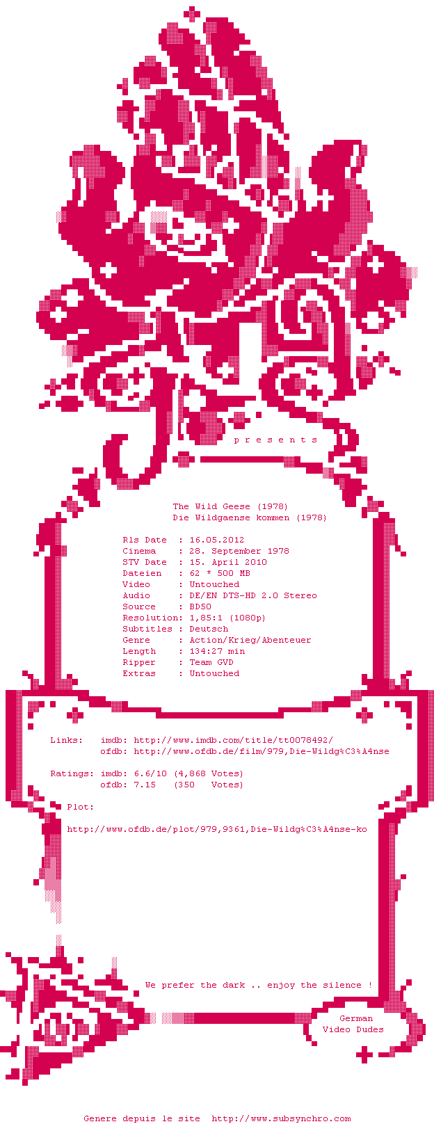 Voir le nfo de la release Les.Visiteurs.1.1993.NTSC.FULL.FRENCH.DVDR-N2O