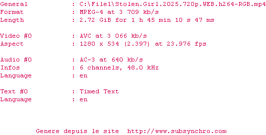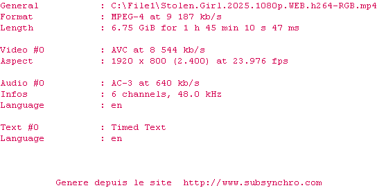 Voir le nfo de la release Stolen.Girl.2025.1080p.WEB.H264-RGB