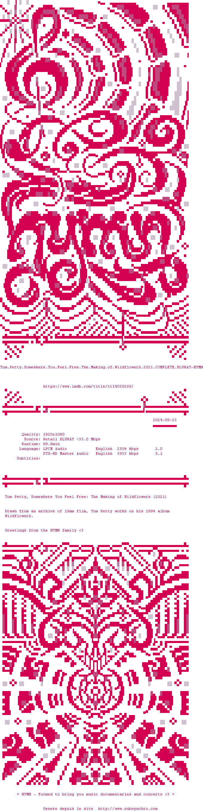 Voir le nfo de la release Tom.Petty.Somewhere.You.Feel.Free.The.Making.Of.Wildflowers.2021.COMPLETE.BLURAY-HYMN