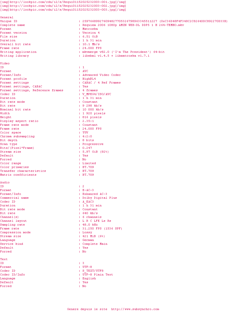 Voir le nfo de la release Requiem.2006.1080p.AMZN.WEB-DL.DDP5.1.H.264-TEMHO