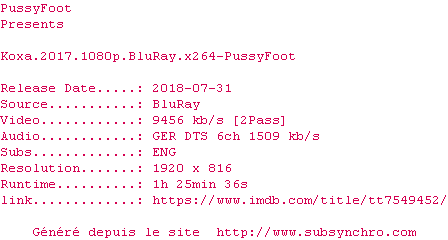 Voir le nfo de la release Koxa.2017.1080p.BluRay.x264-PussyFoot