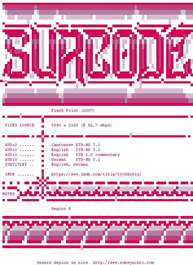 Voir le nfo de la release Flash.Point.2007.COMPLETE.UHD.BLURAY-SURCODE