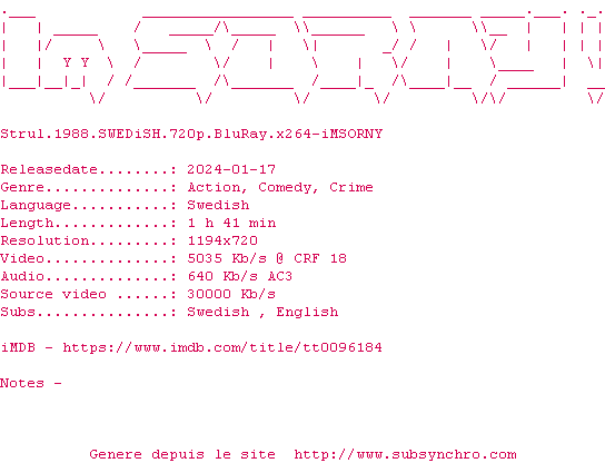Voir le nfo de la release Strul.1988.SWEDiSH.720p.BluRay.x264-iMSORNY