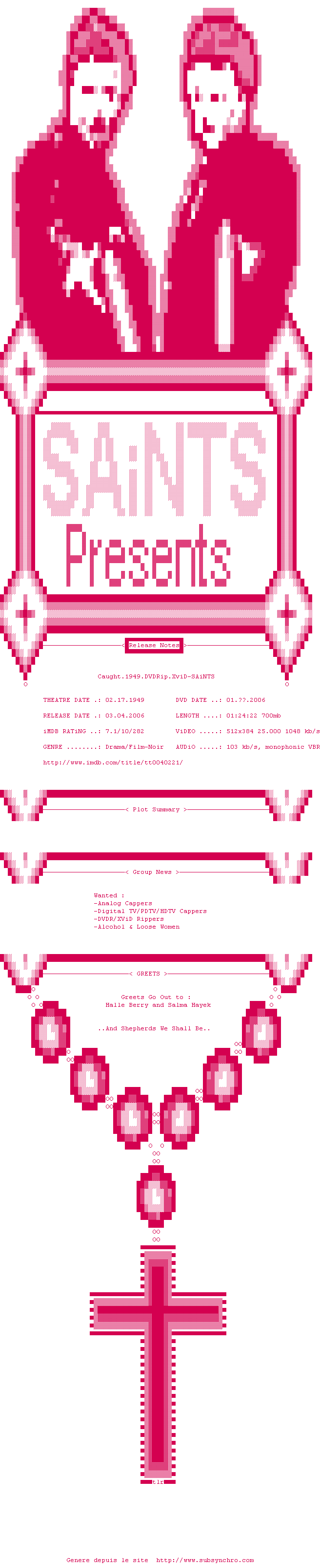 Voir le nfo de la release Caught.1949.DVDRip.XviD-SAiNTS