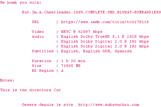 Voir le nfo de la release But.Im.A.Cheerleader.1999.COMPLETE.UHD.BLURAY-B0MBARDiERS