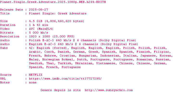 Voir le nfo de la release Menudas.Piezas.2024.MULTi.COMPLETE.BLURAY-SharpHD